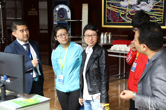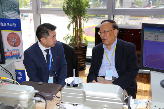 Mr. Xue Qun Ji visits the Huahui stand. Photo: D. Hosner